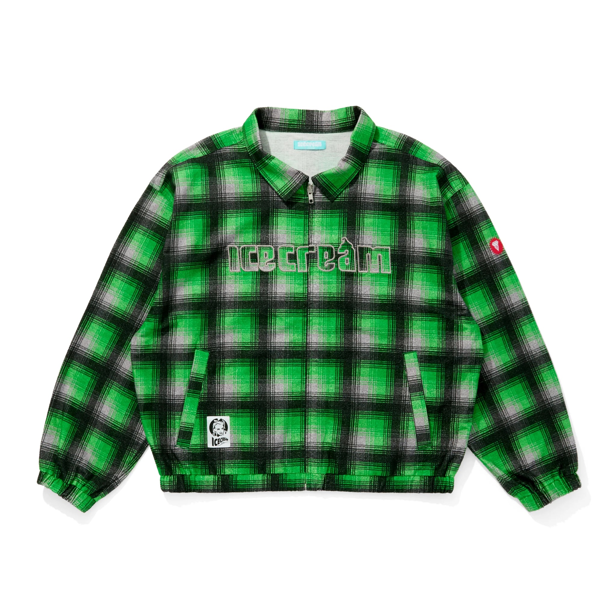 Home/BBC ICECREAM FALL '25/APPLIQUE LOGO FLANNEL CHECK ZIP UP SHIRT - GRAYXGREEN