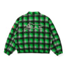 APPLIQUE LOGO FLANNEL CHECK ZIP UP SHIRT - GRAYXGREEN
