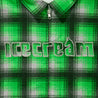 APPLIQUE LOGO FLANNEL CHECK ZIP UP SHIRT - GRAYXGREEN Open image lightbox