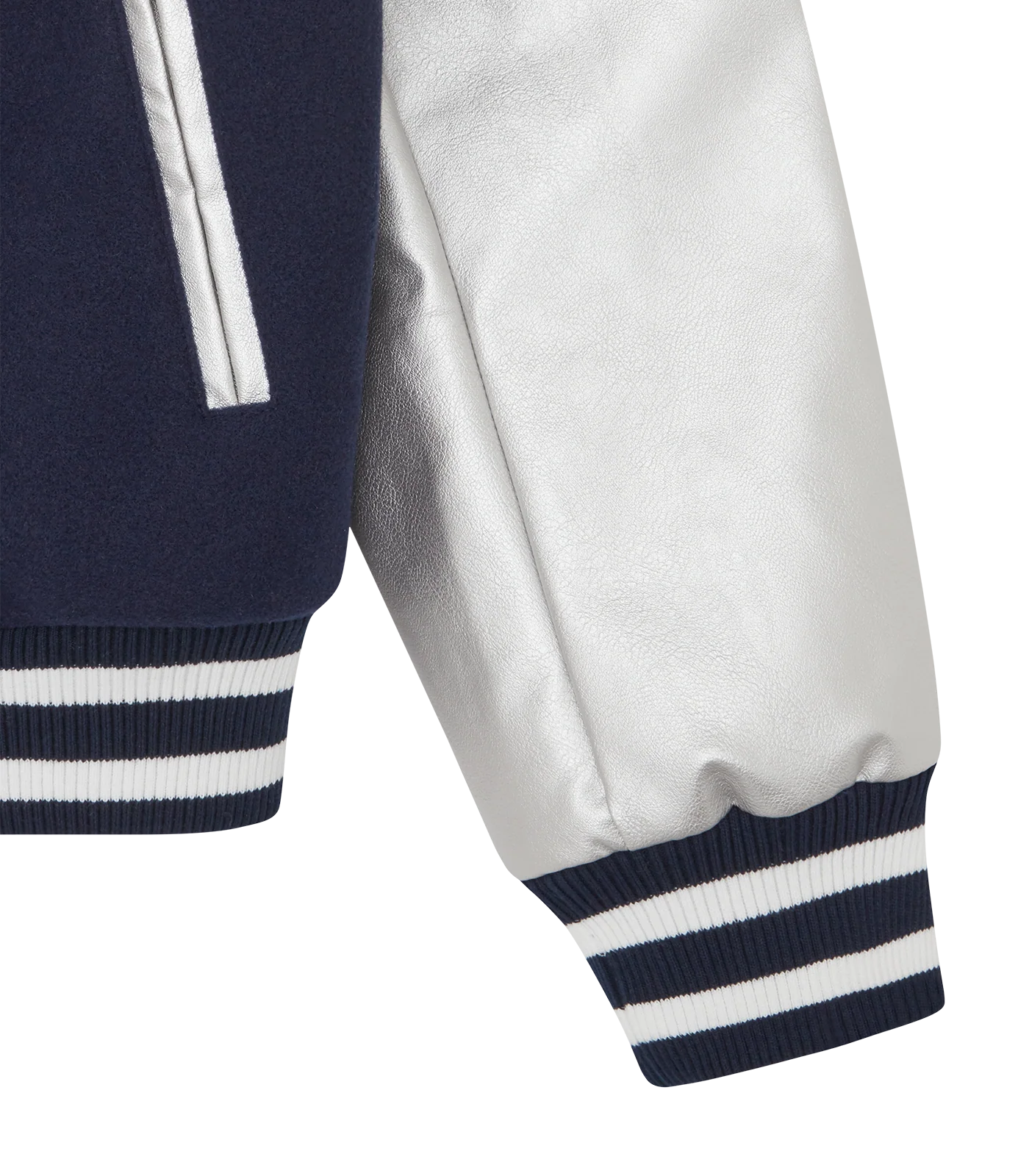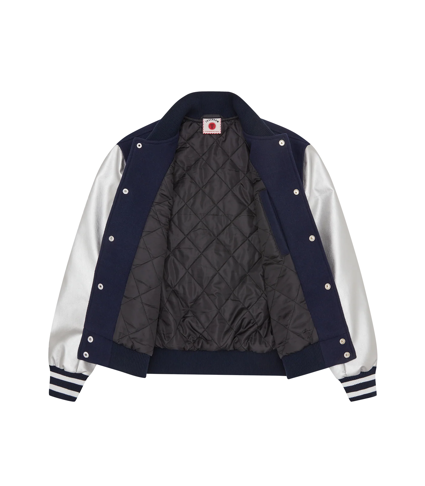 CHERRY VARSITY JACKET - NAVY/SILVER Open image lightbox