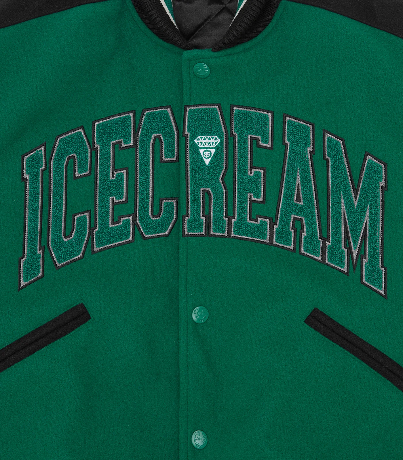 Home/BBC ICECREAM FALL '25/COLLEGE VARSITY JACKET - GREEN/NAVY