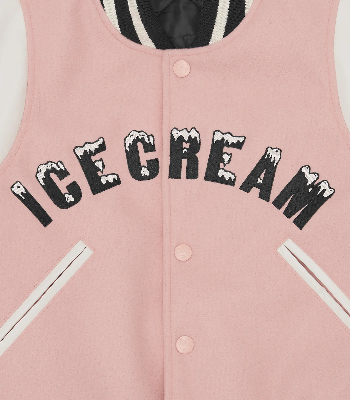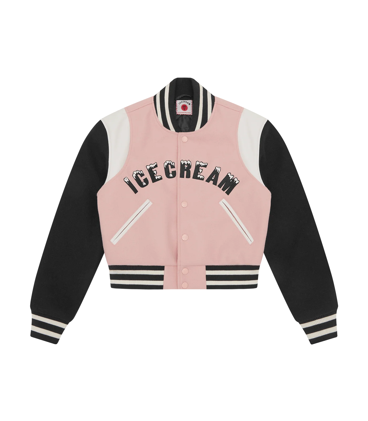 Home/BBC ICECREAM FALL '25/DRIPPY CROPPED VARSITY JACKET - PINK