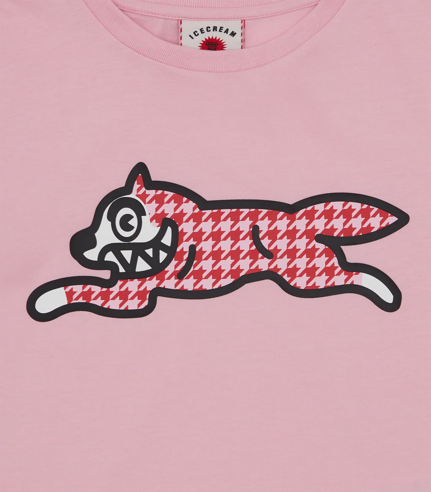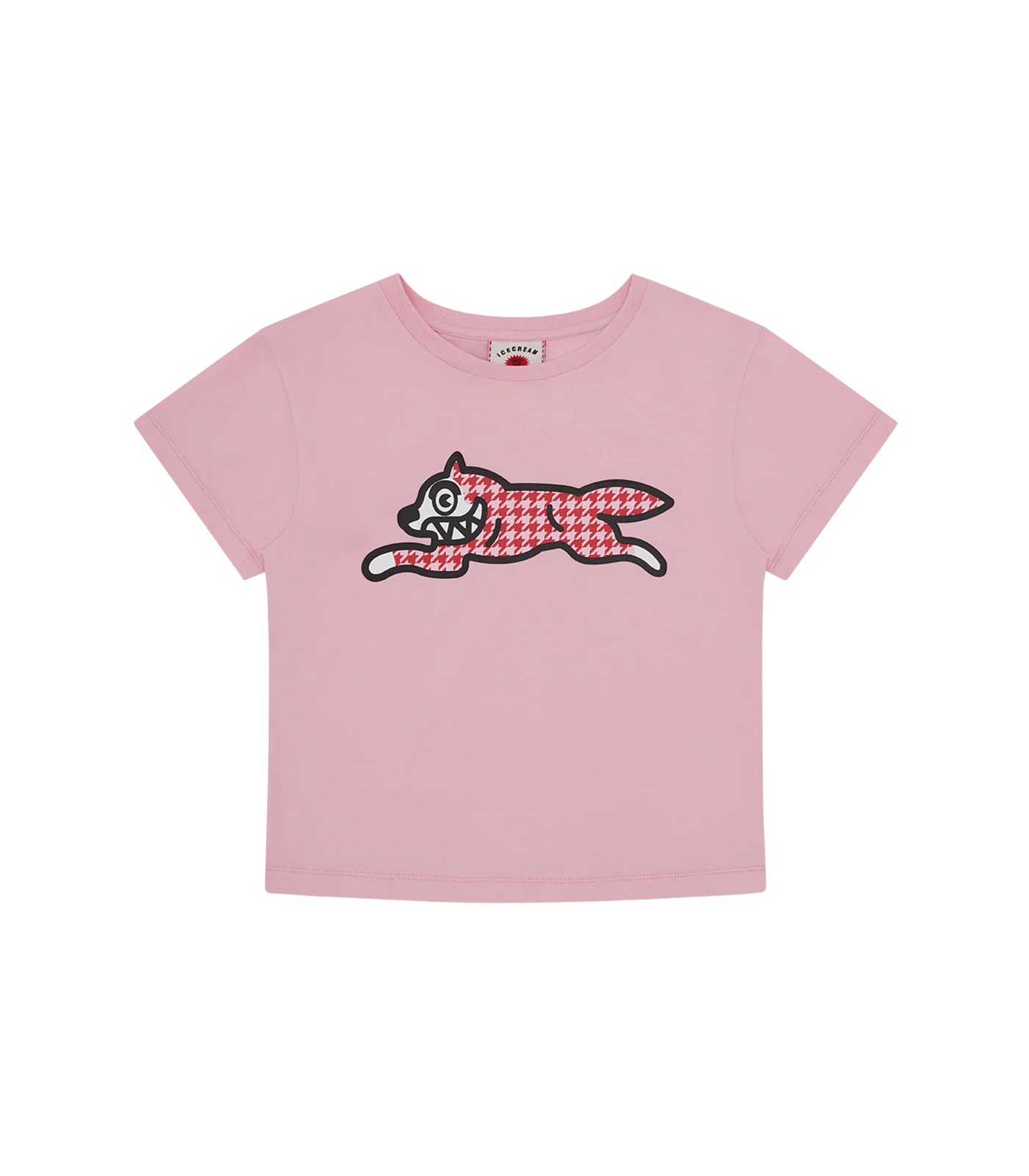 Home/BBC ICECREAM FALL '25/HOUNDSTOOTH RUNNING DOG BABY TEE - PINK