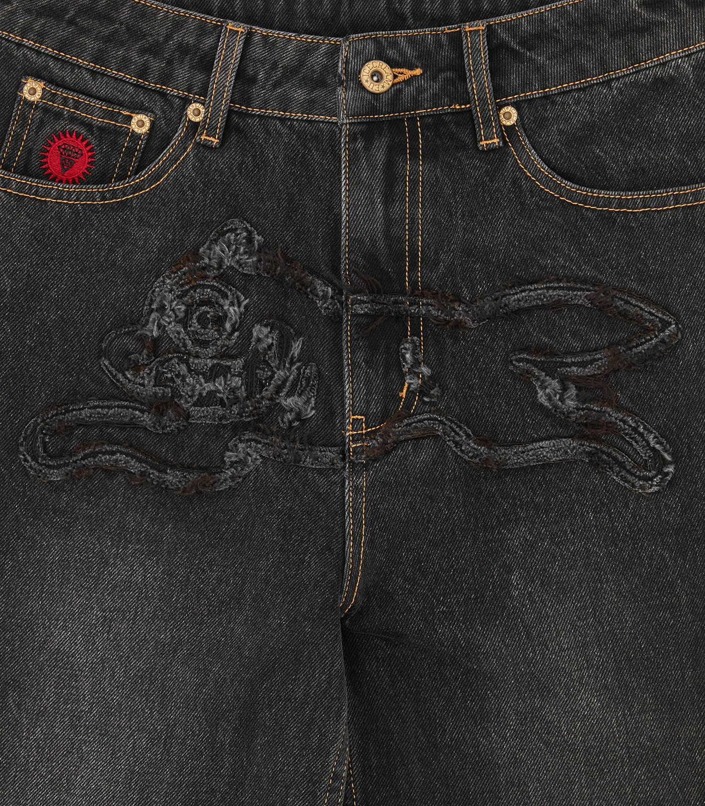 Home/BBC ICECREAM SPRING '26/DISTRESSED RUNNING DOG DENIM PANTS - WASHED BLACK