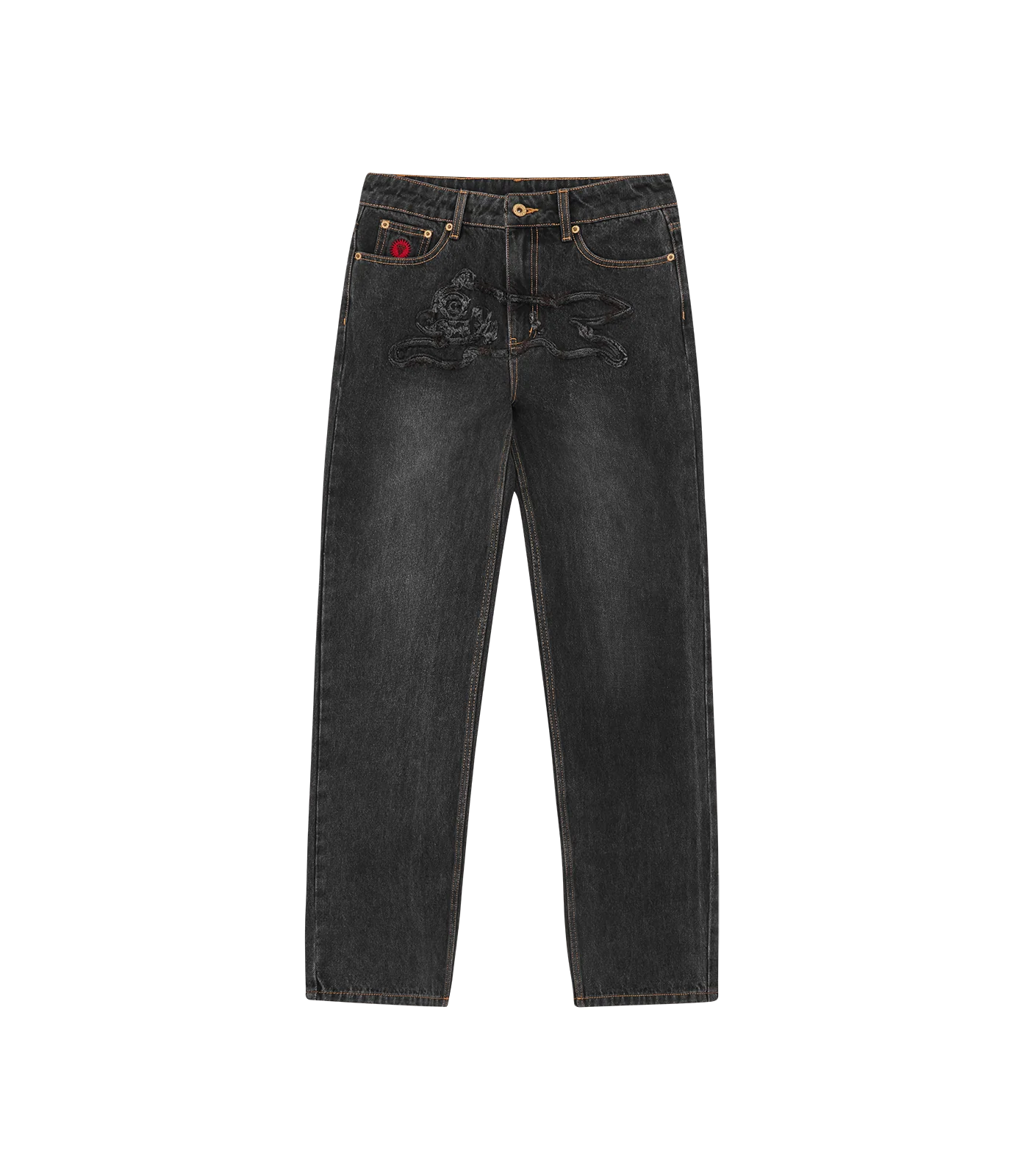 DISTRESSED RUNNING DOG DENIM PANTS - WASHED BLACK