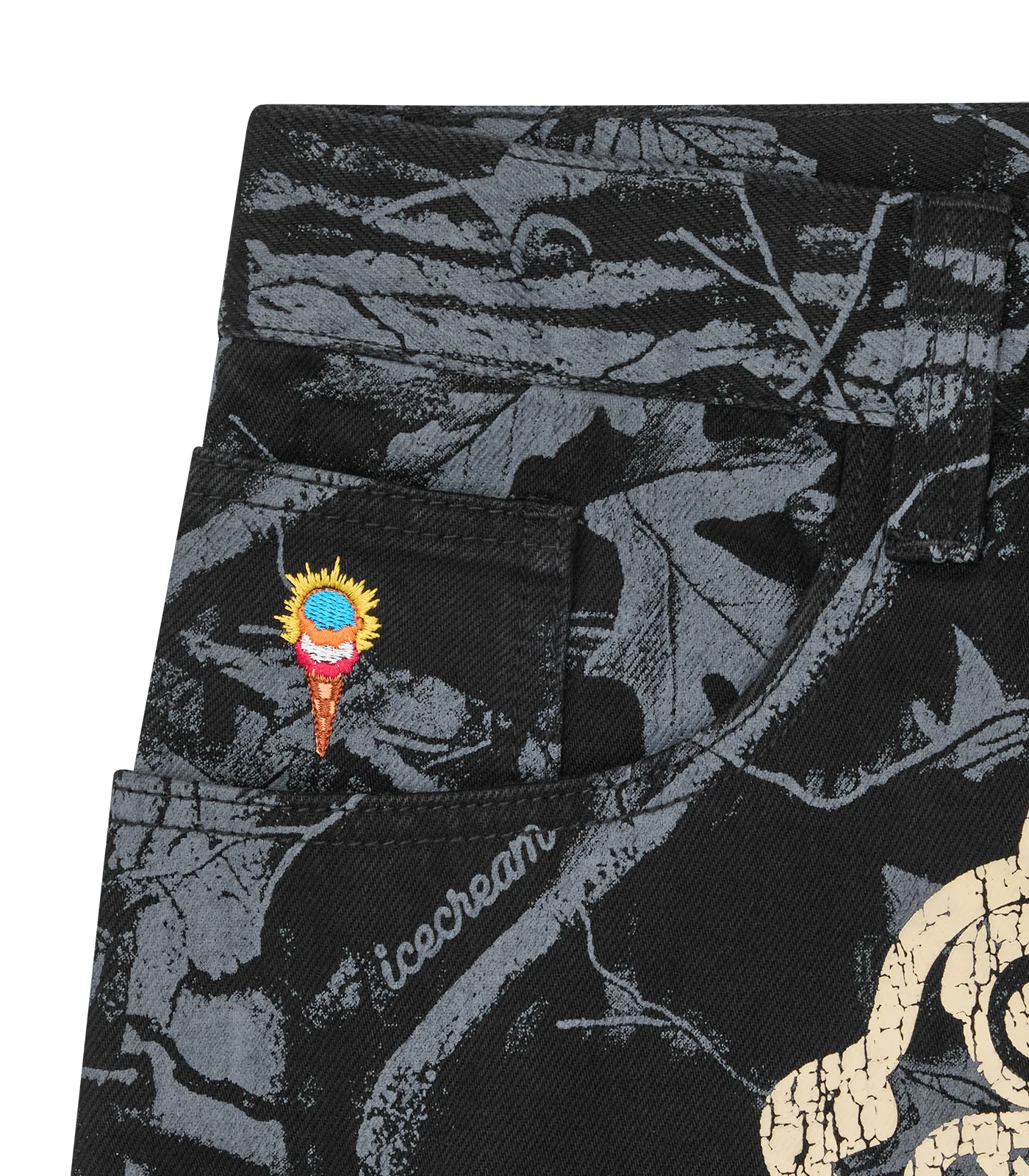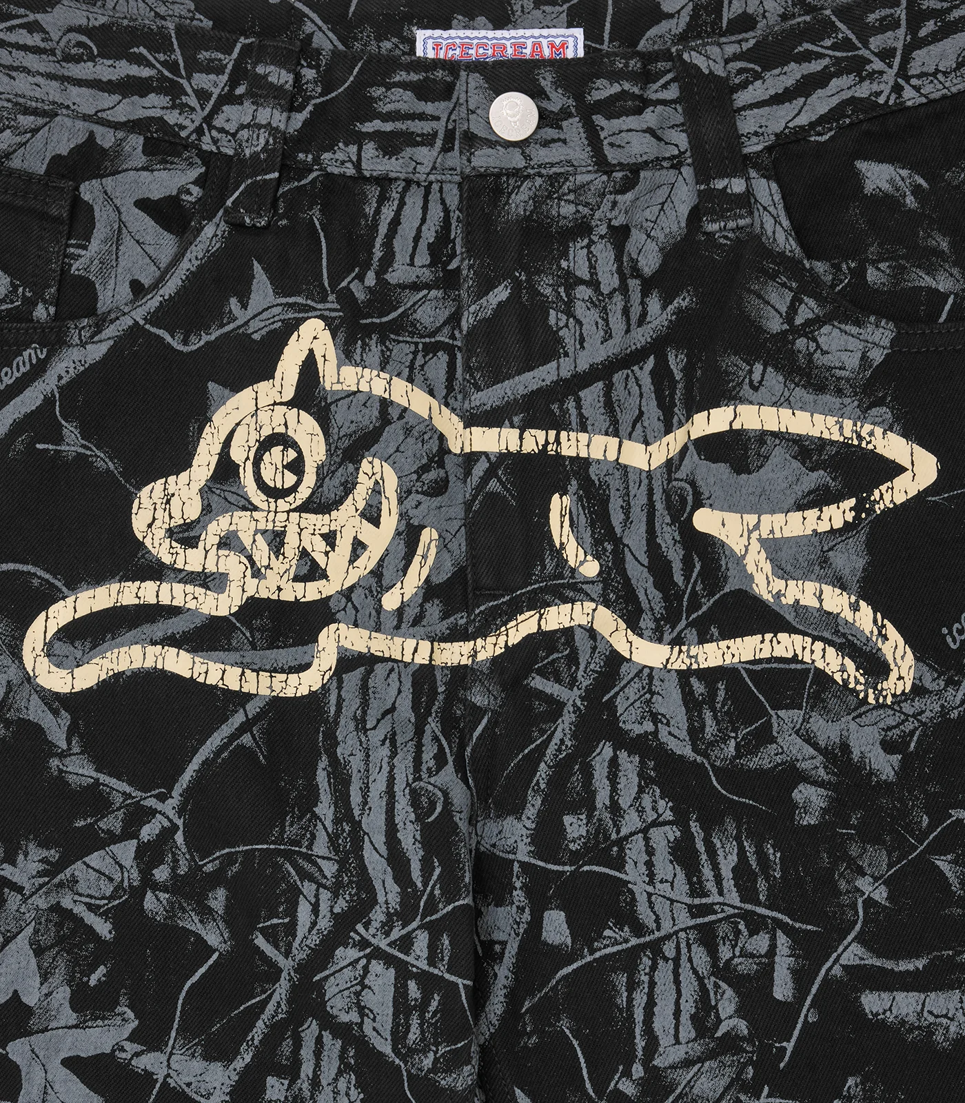 Home/BBC ICECREAM SPRING '26/TREE CAMO DOUBLE SCOOP DENIM PANTS - BLACK
