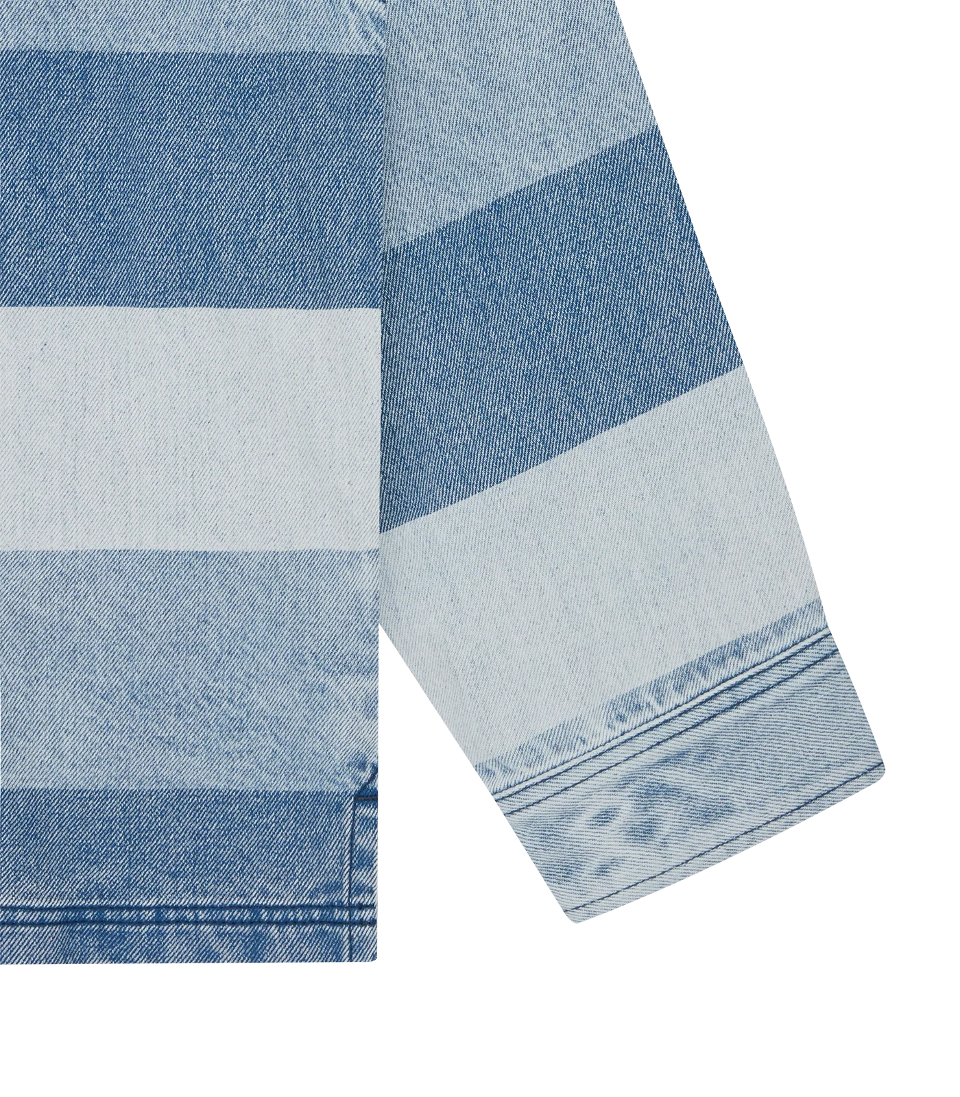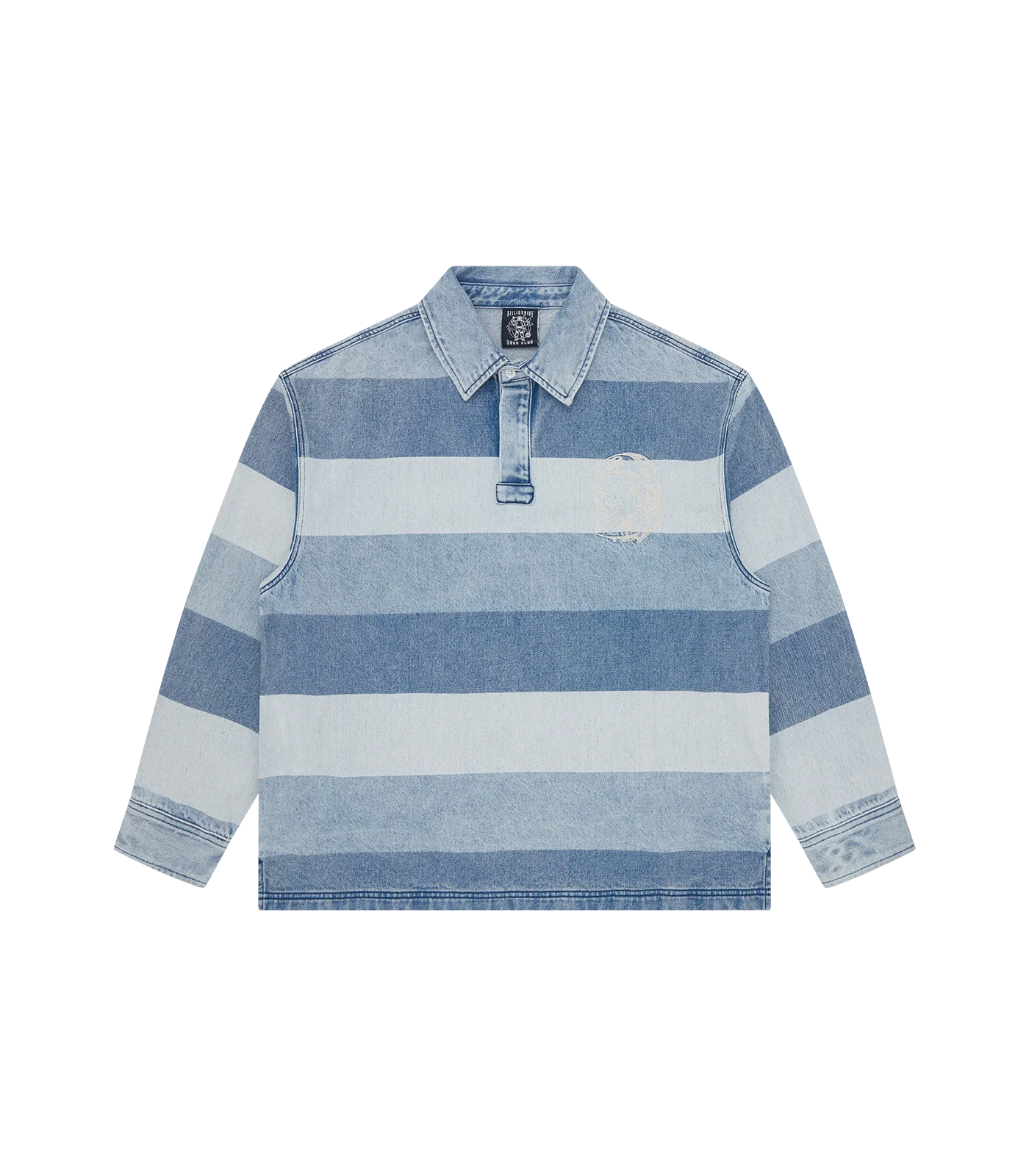 SCRIPT DENIM LONG SLEEVE RUGBY SHIRT - LIGHT WASH BLUE
