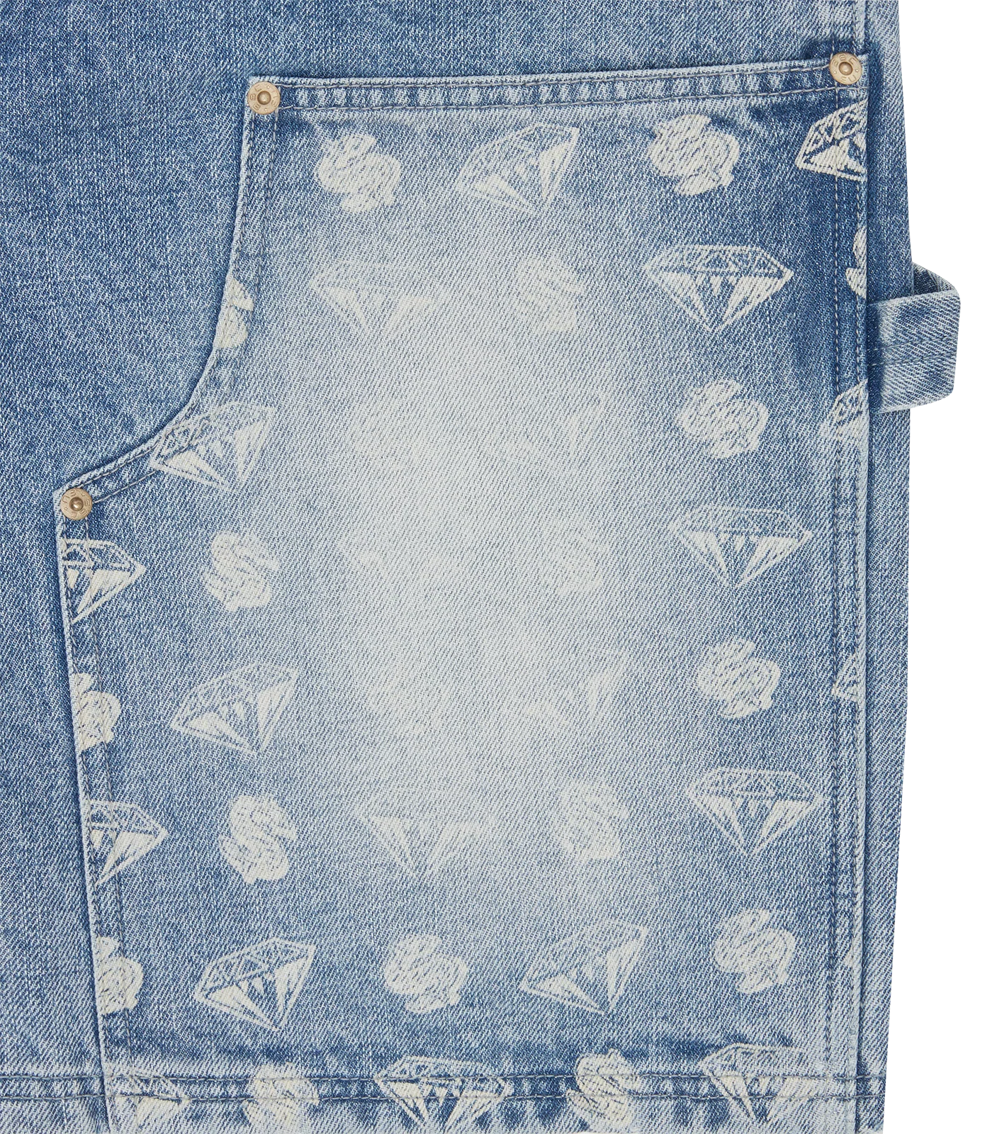 DIAMONDS & DOLLARS DENIM CARPENTER SHORT - LIGHT WASH BLUE Open image lightbox