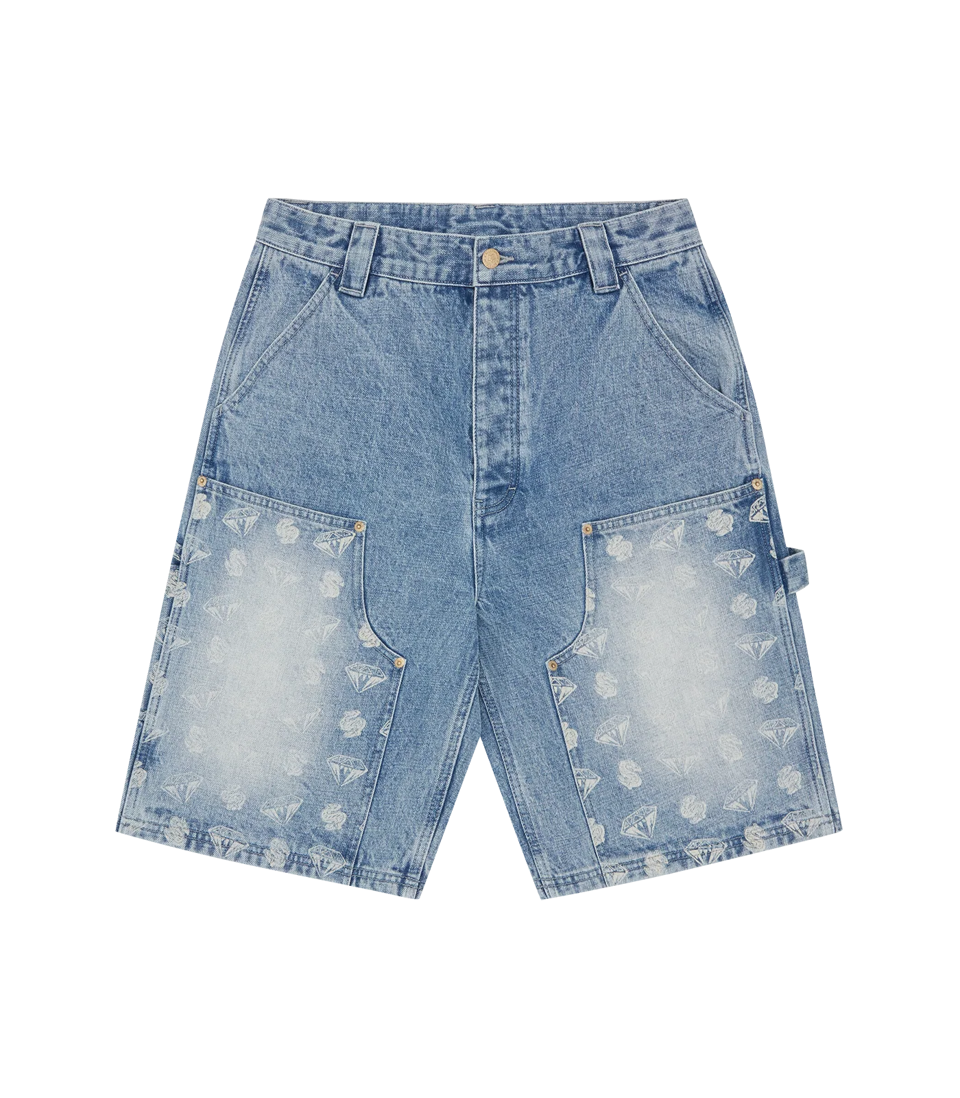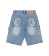 DIAMONDS & DOLLARS DENIM CARPENTER SHORT - LIGHT WASH BLUE