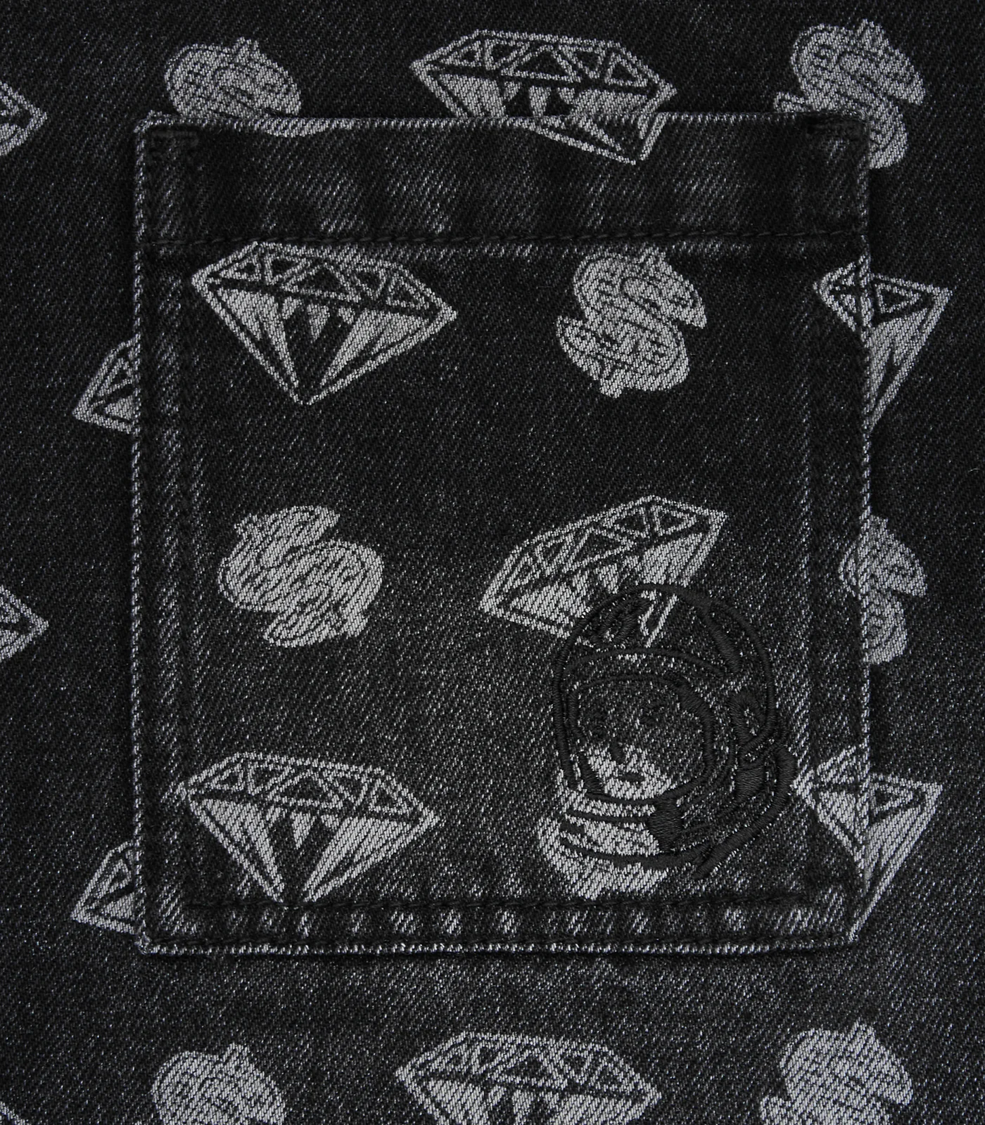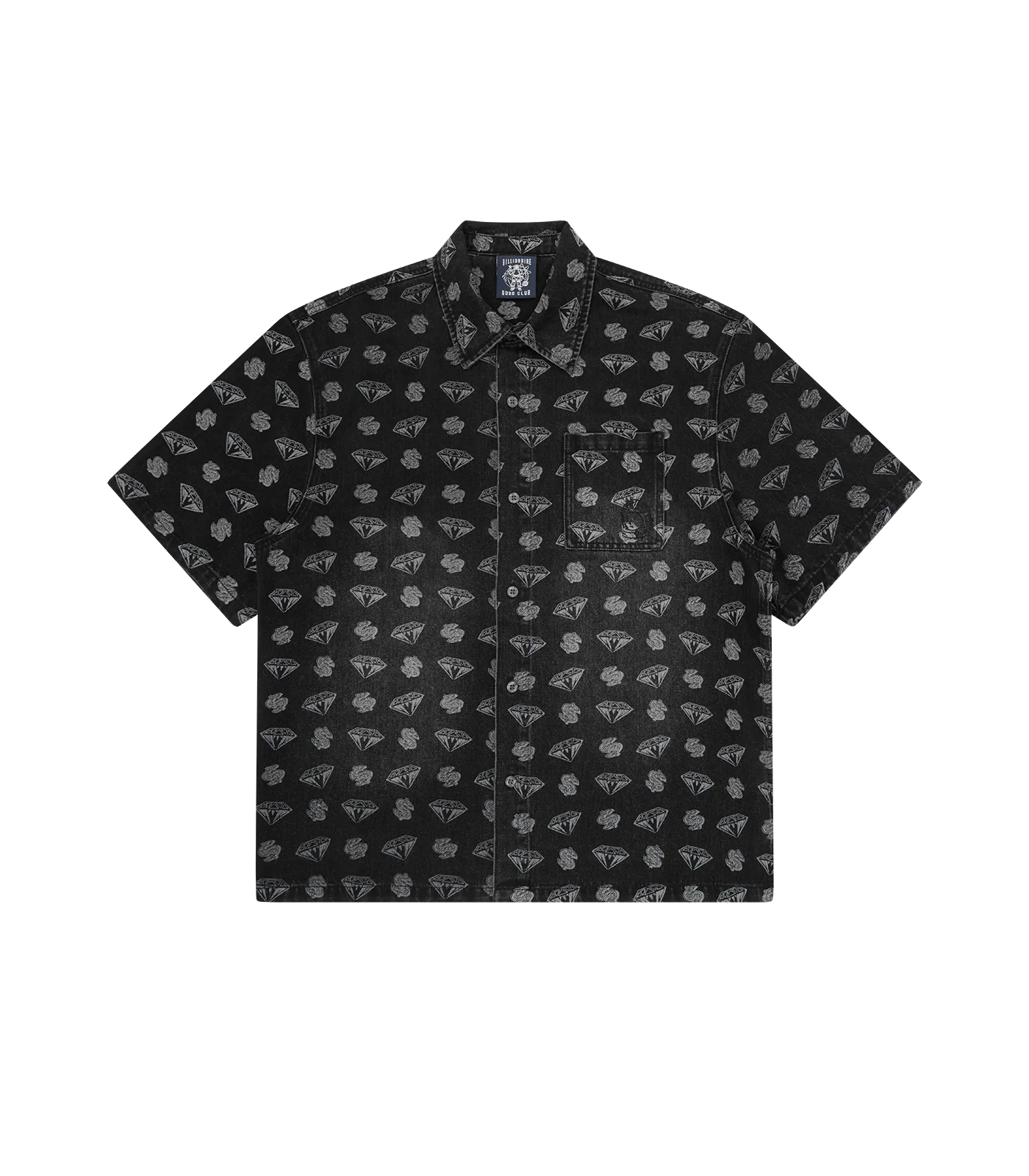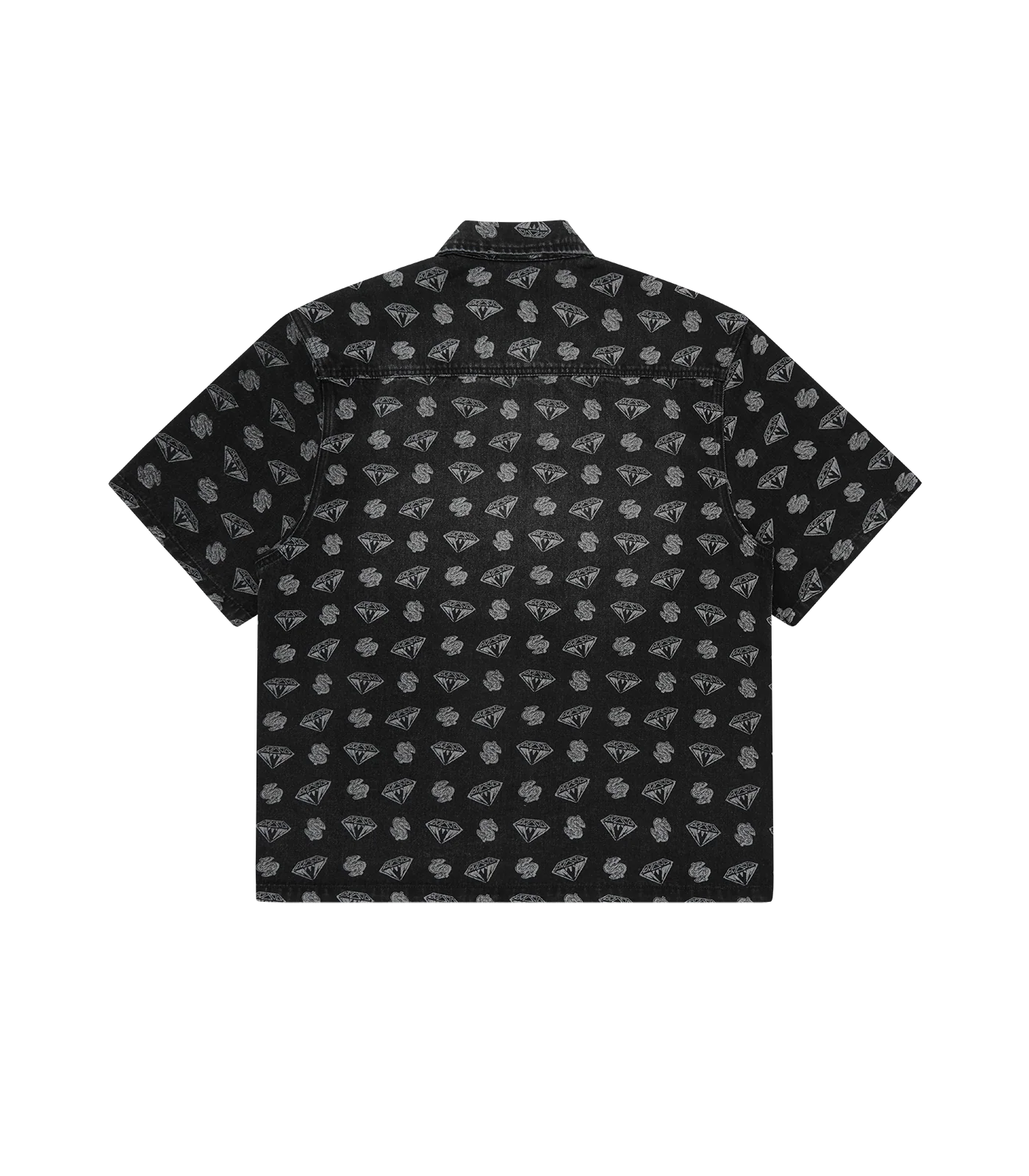 DIAMONDS & DOLLARS OVERSIZED SS DENIM SHIRT - BLACK