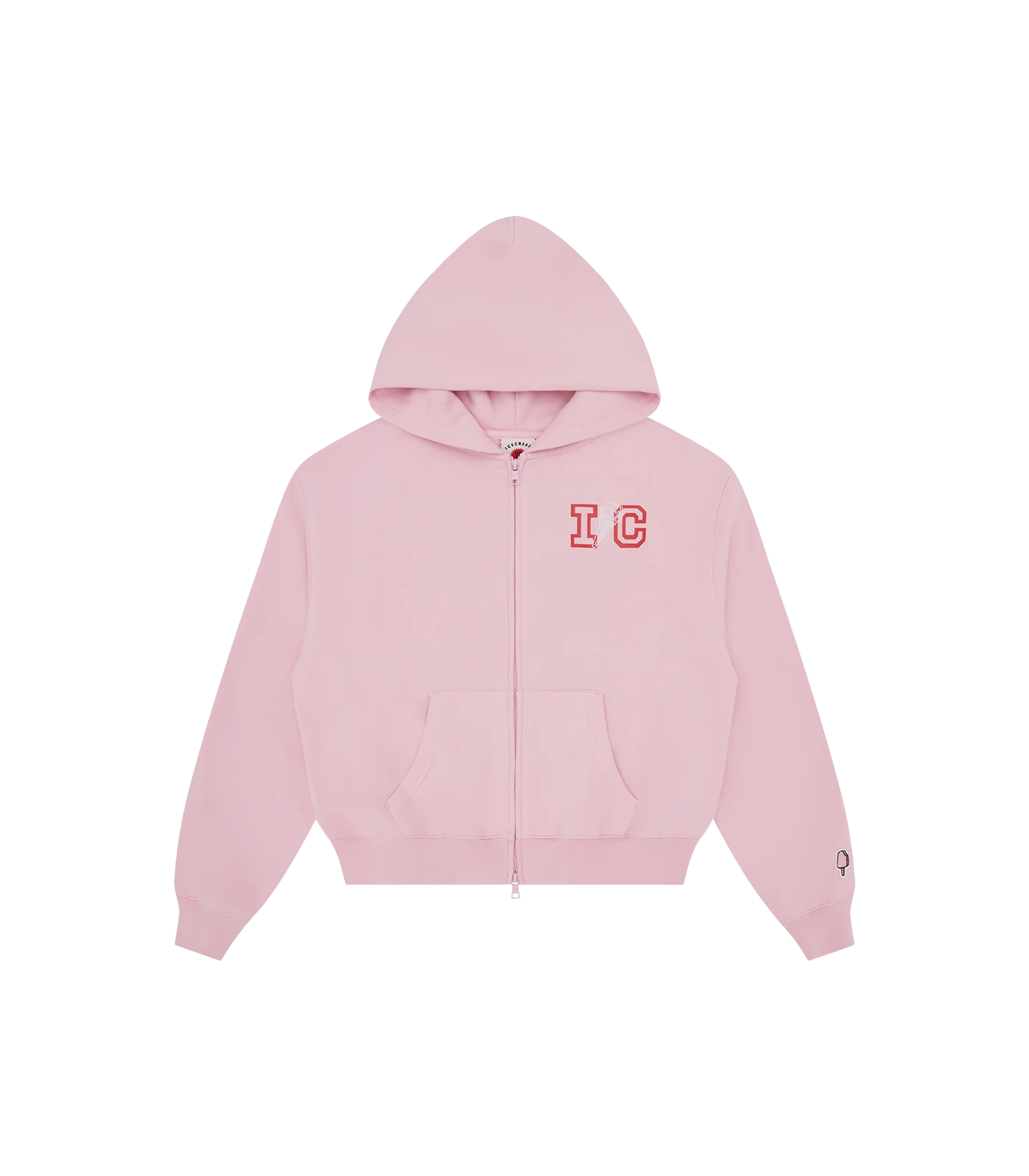 CONE CROPPED ZIP THROUGH HOOD - PINK