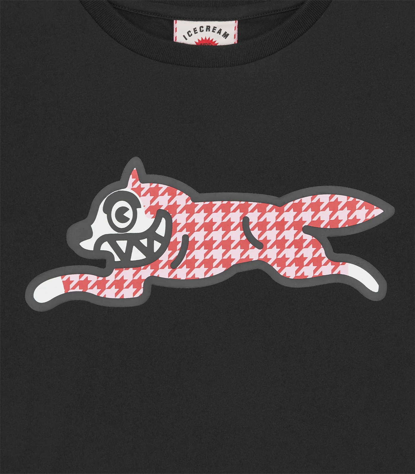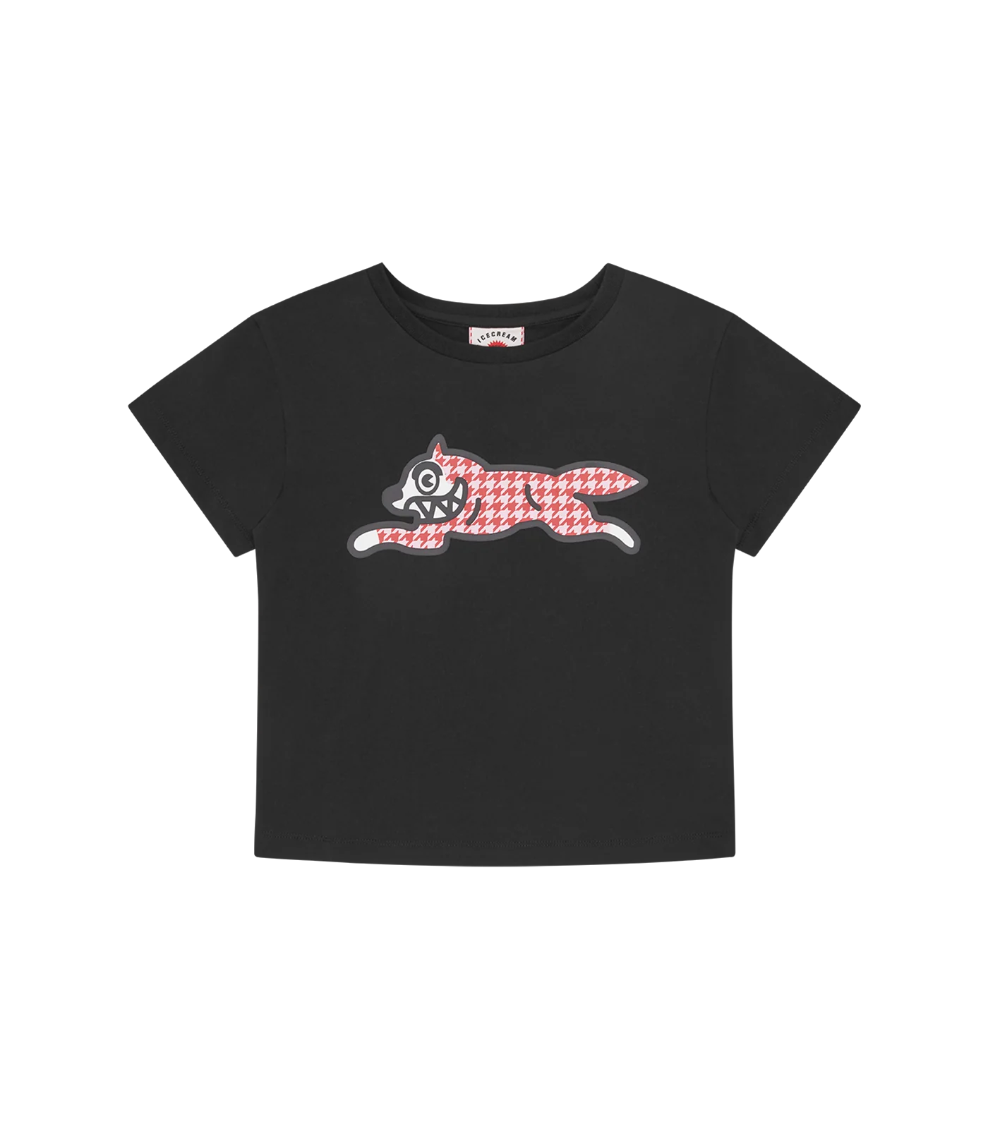 HOUNDSTOOTH RUNNING DOG BABY TEE - BLACK