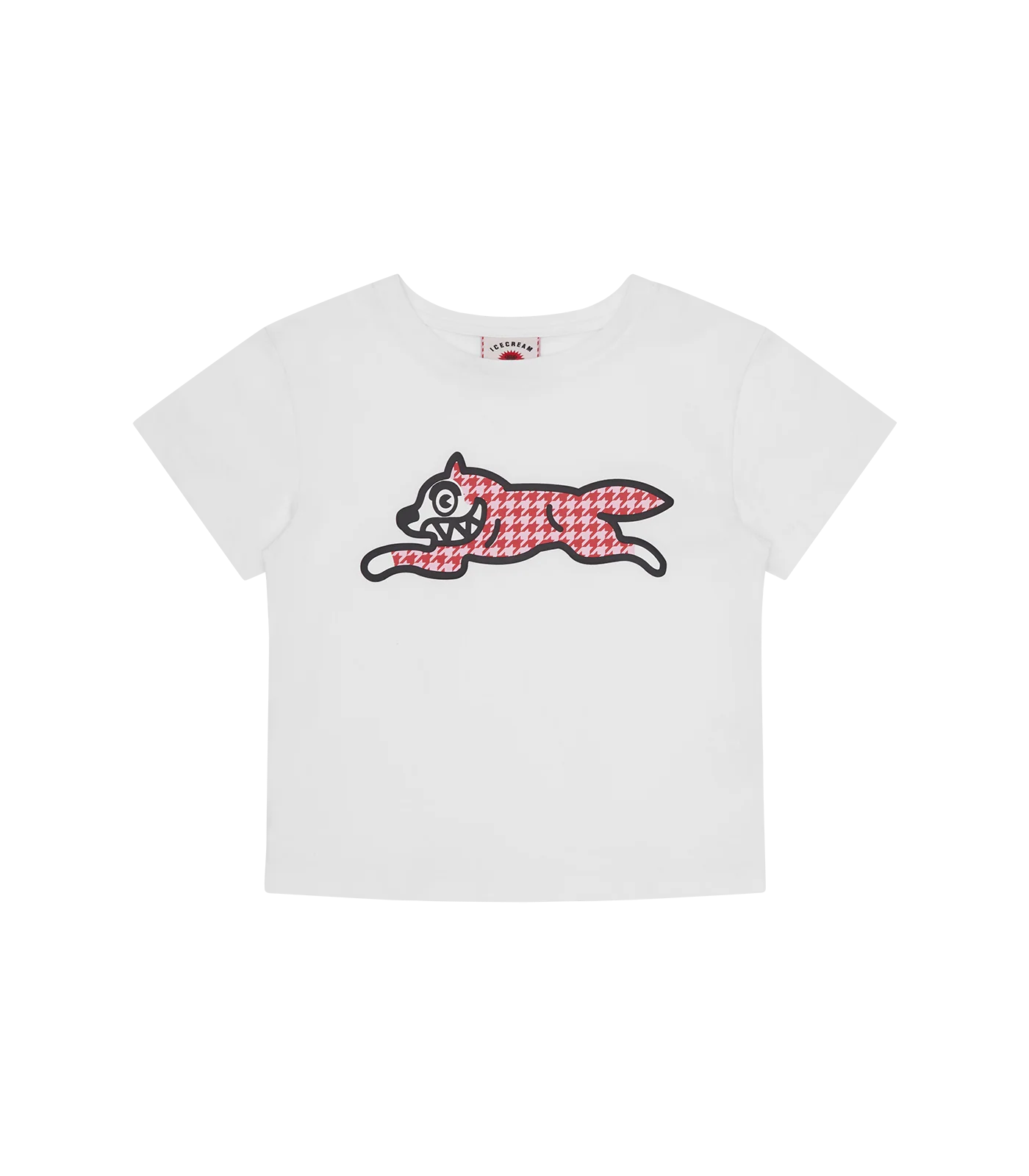 HOUNDSTOOTH RUNNING DOG BABY TEE - WHITE
